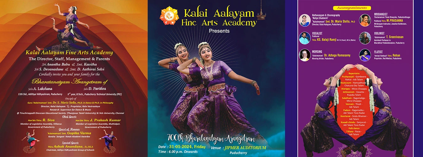 wherein by the blessings of the almighty Kalai Aalayam has 1100 students and nearly 45 faculties contributing their service to Indian and Western Dance and Music. The staff working at Kalai Aalayam are qualified in the fields of Art holding degrees in Masters, M.Phil or Ph.D.